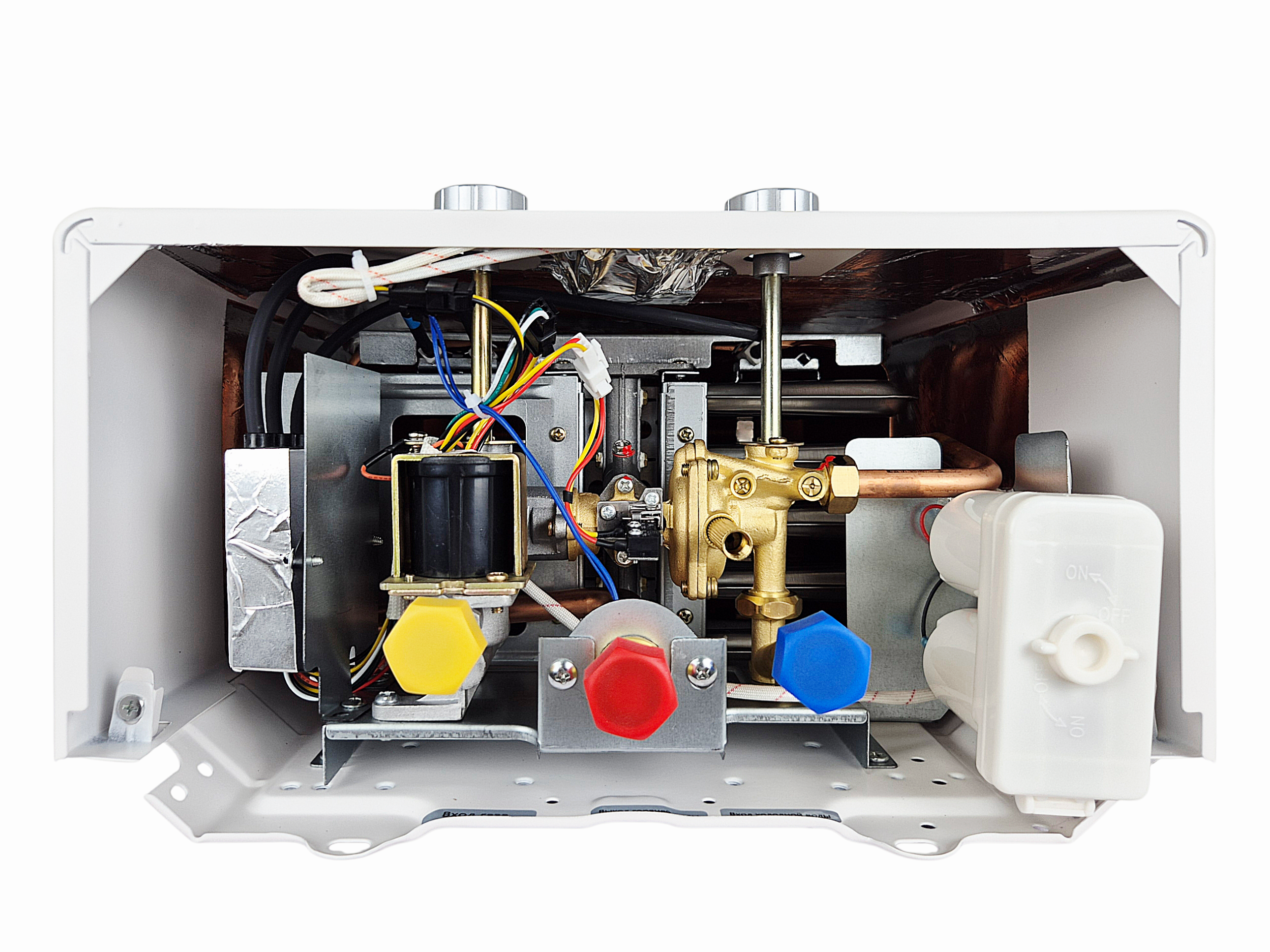 Газовые водонагреватели САРМАТ предназначены для обеспечения горячей водой бытовых и промышленных объектов, имеющих магистраль холодного водоснабжения с необходимыми параметрами. В качестве топлива может использоваться как природный газ, так и сжиженный (баллонный газ). Водонагреватель состоит из медного теплообменника, газовой горелки, запала и системы управления. Особенности газового водонагревателя: работа без электрического питания, работа даже при низком давлении поступающей воды, медный теплообменник, надежная немецкая система управления.
