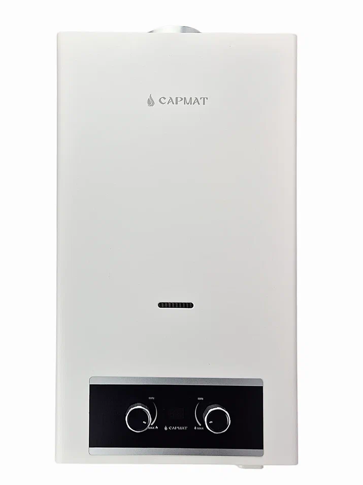 Газовые водонагреватели САРМАТ предназначены для обеспечения горячей водой бытовых и промышленных объектов, имеющих магистраль холодного водоснабжения с необходимыми параметрами. В качестве топлива может использоваться как природный газ, так и сжиженный (баллонный газ). Водонагреватель состоит из медного теплообменника, газовой горелки, запала и системы управления. Особенности газового водонагревателя: работа без электрического питания, работа даже при низком давлении поступающей воды, медный теплообменник, надежная немецкая система управления.