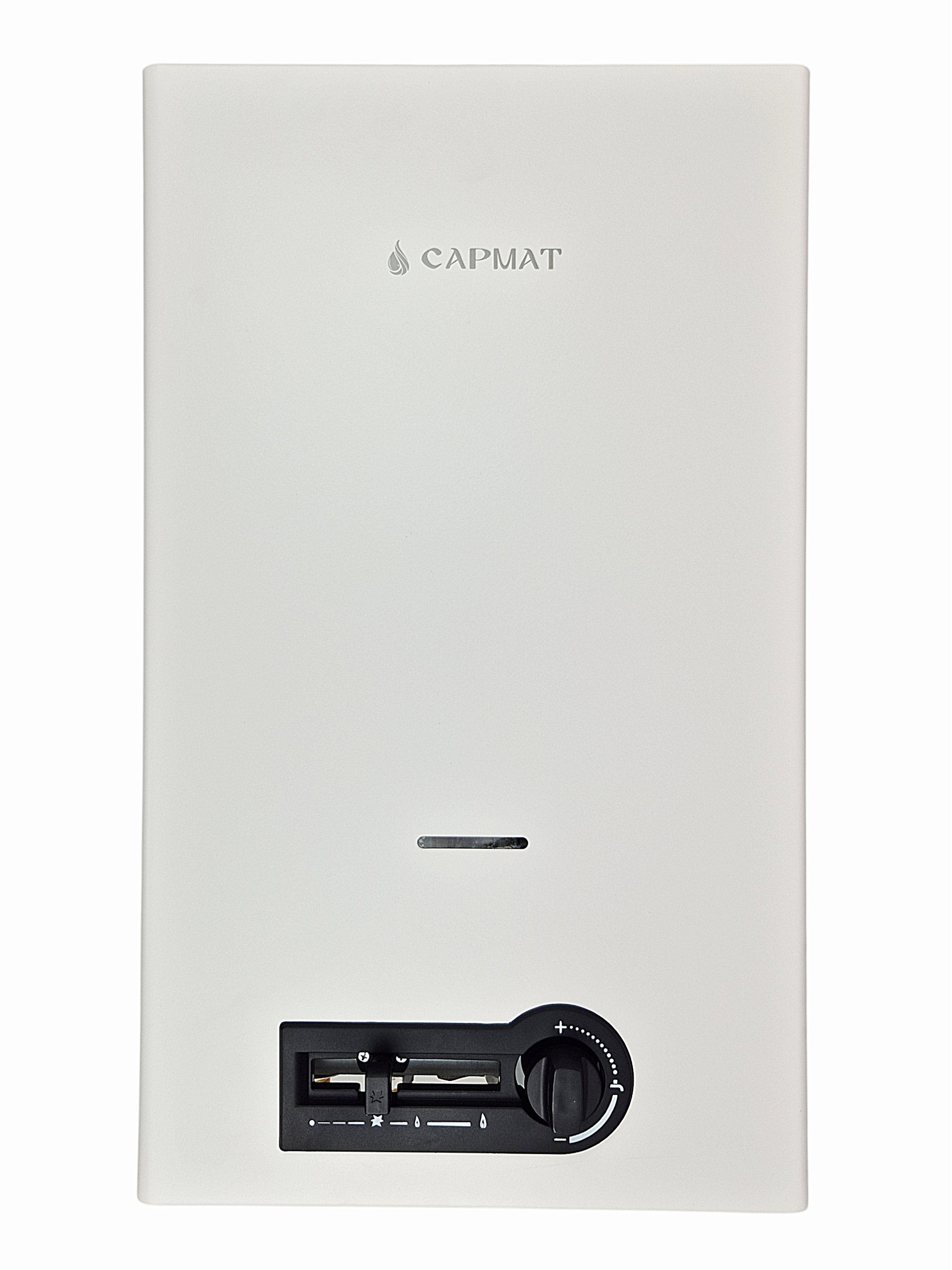 Газовые водонагреватели САРМАТ предназначены для обеспечения горячей водой бытовых и промышленных объектов, имеющих магистраль холодного водоснабжения с необходимыми параметрами. В качестве топлива может использоваться как природный газ, так и сжиженный (баллонный газ). Водонагреватель состоит из медного теплообменника, газовой горелки, запала и системы управления. Особенности газового водонагревателя: работа без электрического питания, работа даже при низком давлении поступающей воды, медный теплообменник, надежная немецкая система управления.