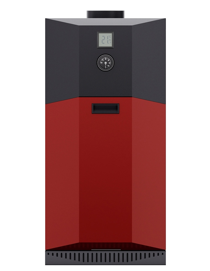 - Регулятор температуры со шкалой для удобства вынесен на переднюю панель котла