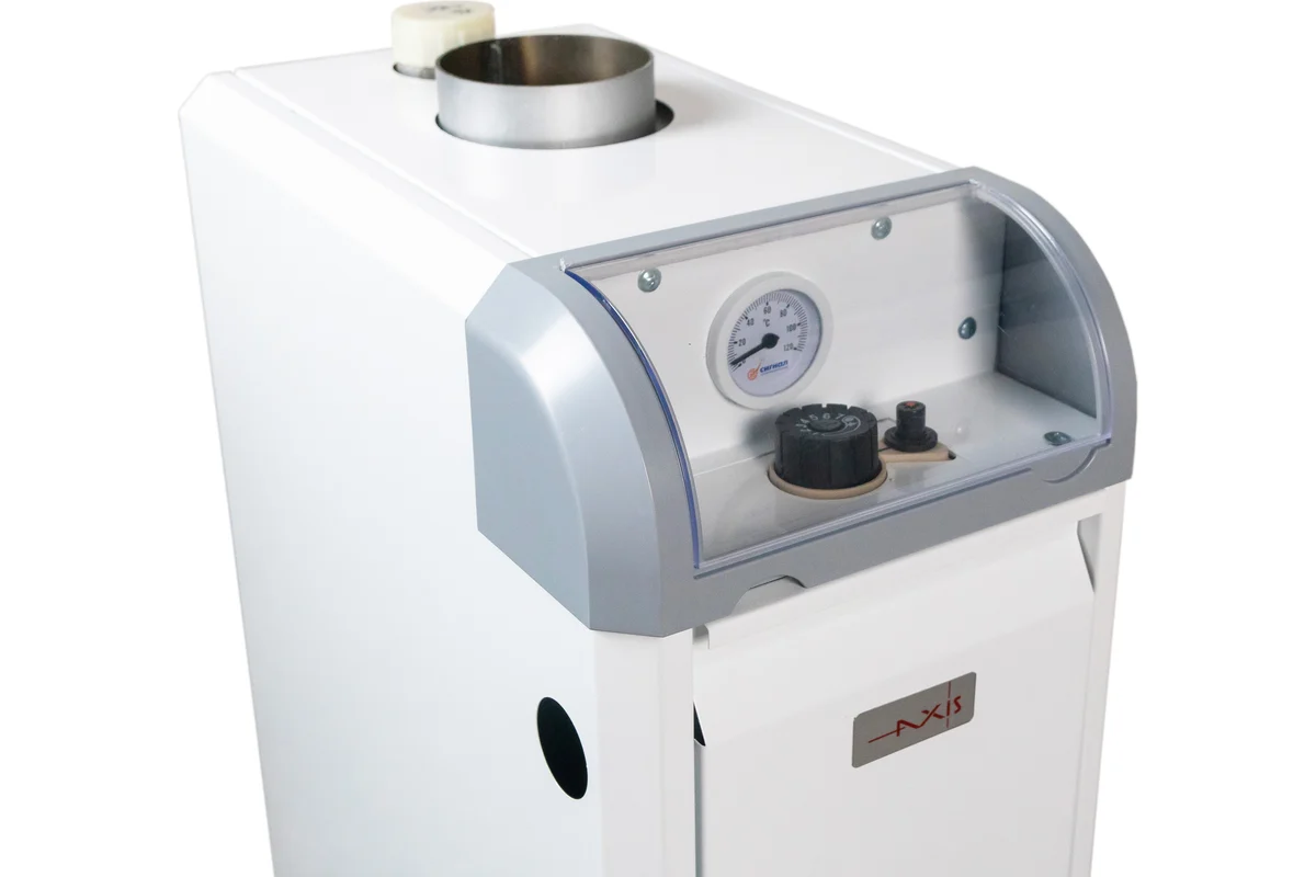 Котел марки «AXIS» с открытой камерой сгорания мощностью 10 кВт может работать в закрытой системе отопления.