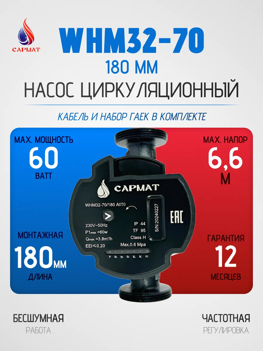 Насос циркуляционный с частотным регулированием САРМАТ WHM32-70 180 мм (CN) – купить за 9 529 ₽ | Сармат