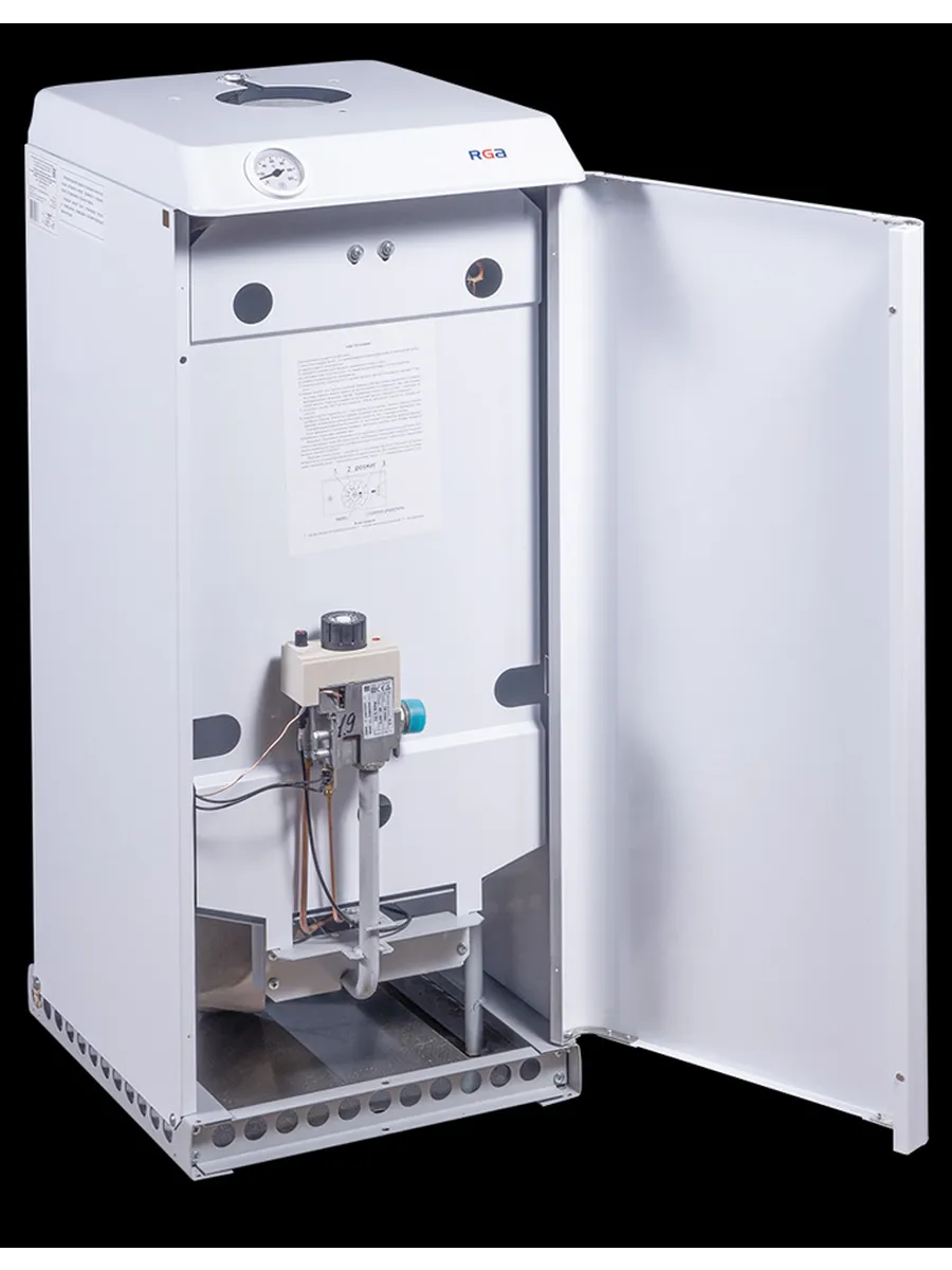 Напольный газовый котел RGA-11К TL (АОГВк-11,6-3) с автоматикой TGV, мощностью 11.6 кВт от компании Ростовгазоаппарат является отопительным газовым аппаратом с боковым подводом отопления, для обеспечения возможности замены старого котла АОГВ-11.6-3 Ростов производства этого же завода.