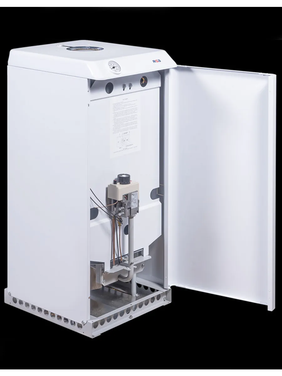 RGA-17К (АОГВк-17.4) TL Ростовгазоаппарат — двухконтурный напольный газовый отопительный котел нового поколения, предназначен для теплоснабжения и горячего водоснабжения жилых помещений таких как дачные дома, загородные коттеджи и зданий коммунально-бытового назначения, оборудованных системами водяного отопления ориентировочной площадью до 200 м2. Причем, патрубки для подключением к системе отопления и горячего водоснабжения расположенными в задней части котла (сзади). Идеально подходит для большинства домовладений средней площади, полностью энергонезависимый, стабильно работает даже при перепадах давления в газовой магистрали.