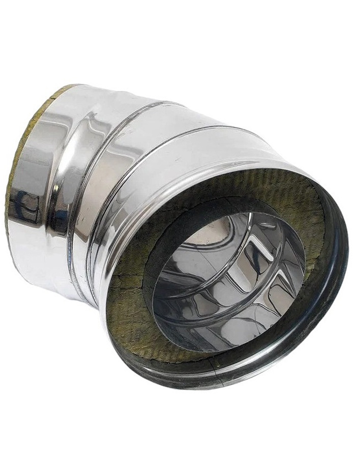 Отвод утепленный (Сэндвич) предназначен для отведения дымохода в сторону или для разворота дымохода вверх, также отвод используют при обходе препятствий, а именно балок, франтонов и т.д. Утепленный отвод в отличии от обычного (одностенного) служит защитой от конденсата, что увеличивает срок службы дымохода.