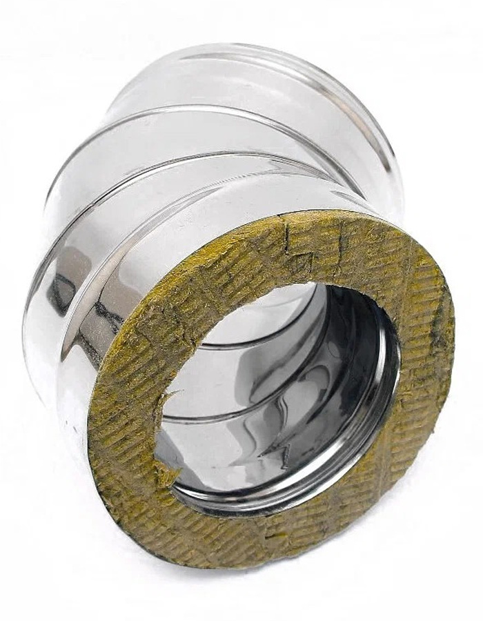 Отвод утепленный (Сэндвич) предназначен для отведения дымохода в сторону или для разворота дымохода вверх, также отвод используют при обходе препятствий, а именно балок, франтонов и т.д. Утепленный отвод в отличии от обычного (одностенного) служит защитой от конденсата, что увеличивает срок службы дымохода.