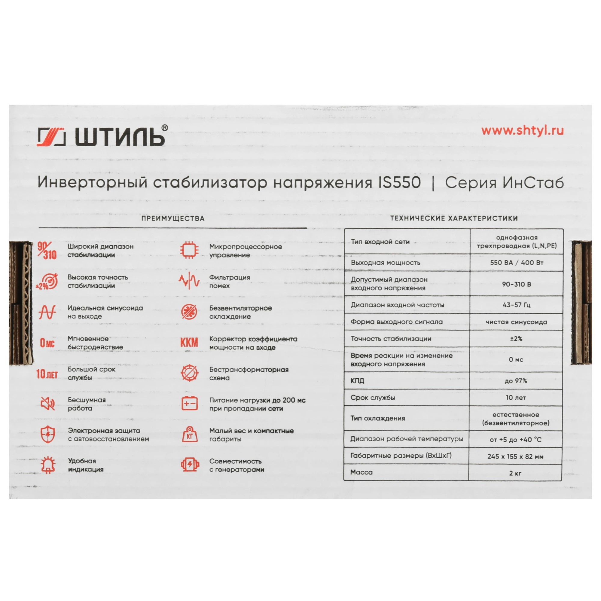Инверторный однофазный стабилизатор Штиль ИнСтаб IS550 220 В 550 ВА служит для выравнивания напряжения в питающей сети. Модель обеспечивает высокую точность стабилизации, погрешность составляет всего 2%. Аппарат отличается простотой в эксплуатации и не требует специального технического обслуживания. Устройство имеет встроенную защиту от короткого замыкания, перегрузок, а также перегрева. Стабилизатор активно используется в офисе, в загородном доме или медицинских учреждениях.